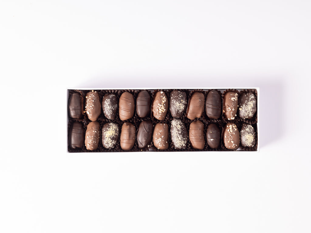 Experience a premium assortment of stuffed dates coated in rich milk and dark chocolate. Crafted with gourmet praline fillings, including ashta, hazelnut, nut praline, pistachio, and mastique this luxurious selection blends authentic Middle Eastern flavors with refined chocolate craftsmanship. Perfect for gifting, sharing, or indulging.